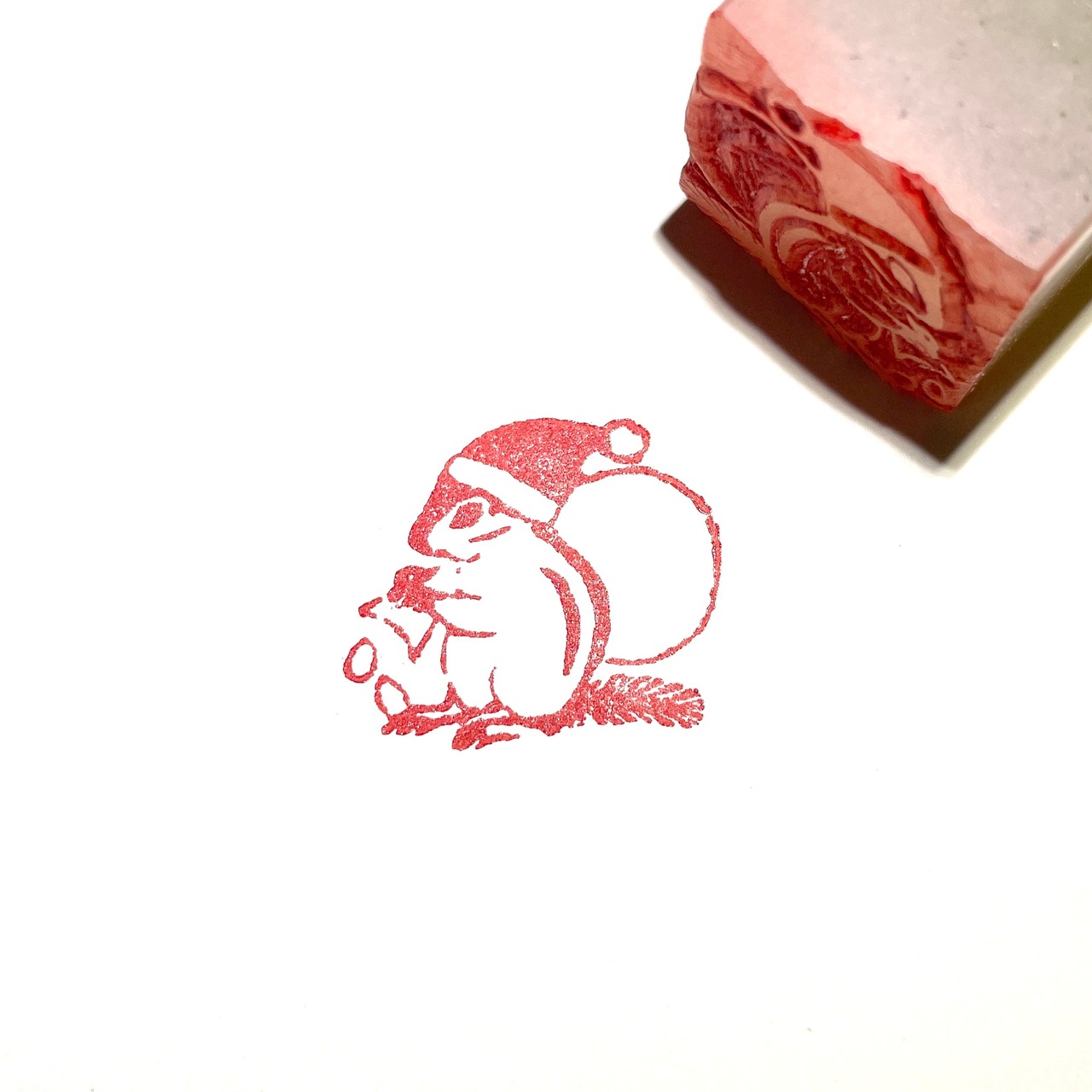 クリスマスカードやギフトのタグ、ケーキやパーティーフードのピックなどに押して、クリスマスシーンもしまりすと一緒に。